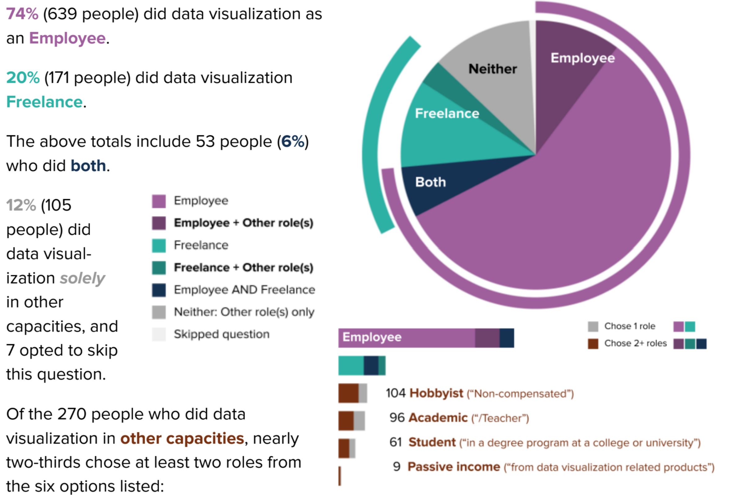 - Colours used is clear and distinct, and able to distinguish the different employment types.